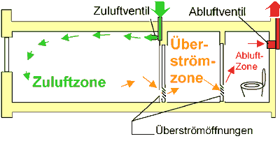 A friss levegő előszőr a fő tartózkodási helyiségekbe kerül (grafika),