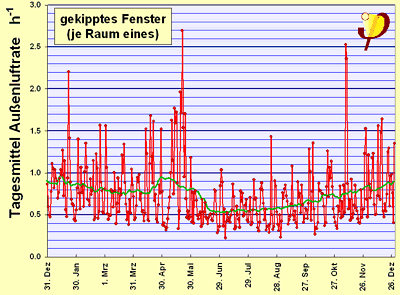 Egy kb. 0,33-szoros légcsere eléréséhez az ablakokat háromóránként 5-10 percre